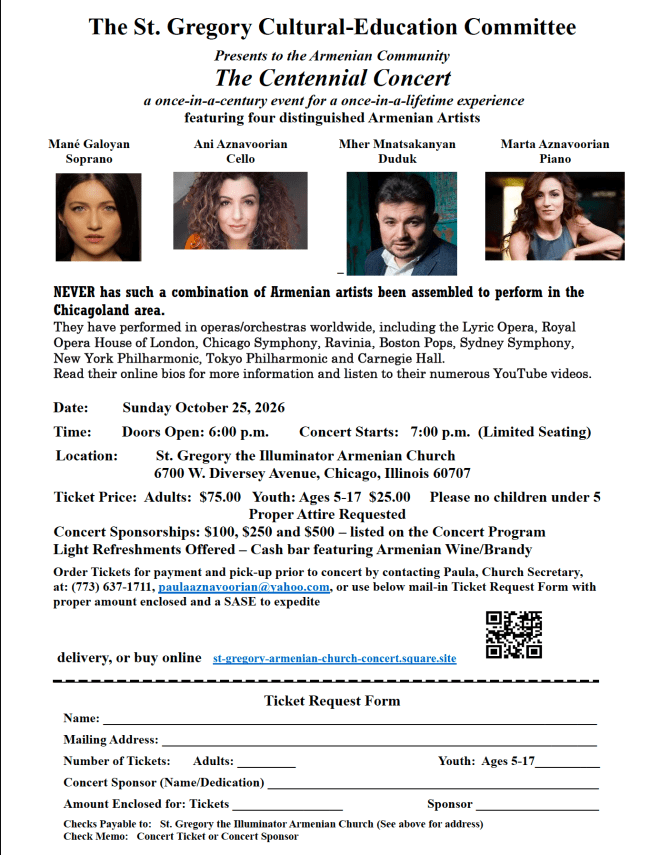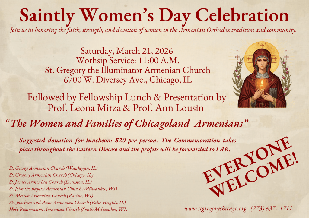 St. Gregory the Illuminator Armenian Church of Chicago is one of the oldest communities in the Midwest. We are the Armenian Church in Chicago, however, we along with our sister parishes serve the Greater Chicagoland area communities. Our mission is to teach, proclaim and be a place of healing as we grow together in our Apostolic Faith in Christ Jesus and to sustain our Christian Armenian identity. We celebrate our long and enduring legacy, the beautiful traditions of our religious and national heritage, with Christian servitude, and with love and reverence towards our Church. This website we hope to engage families and communities, who desire to live a life centered in Christ and to become a source of inspiration for the coming generations. Though ethnically Armenian, WE WELCOME EVERYONE!!
