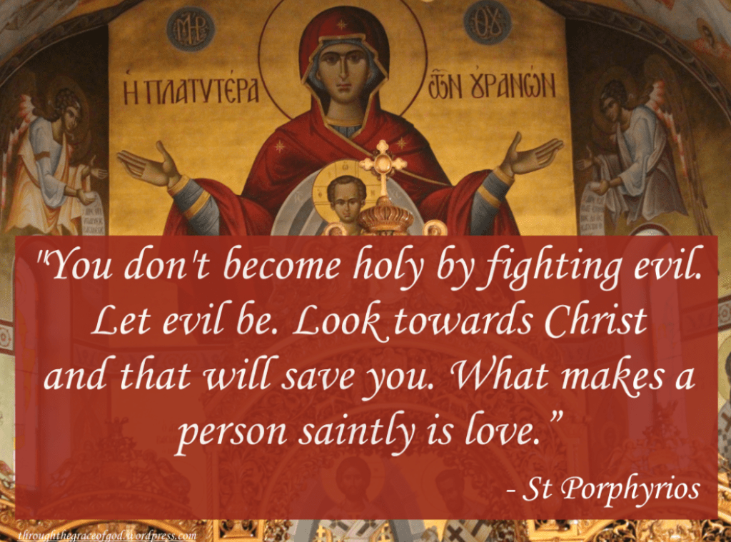 My dears coming to Church every Sunday but living with the mindset that we are better, that we must fight against evil, we must save the world, is the same as never coming to Church because in both cases we’ve missed the message. “For God so loved the world that he gave his only Son, that whoever believes in him should not perish but have eternal life. For God sent the Son into the world, not to condemn the world, but that the world might be saved through him.” (John 3:16-18) My dears, the world does not need us to save it because it is saved through Christ Jesus. As St. Porphyrios teaches, “You don’t become holy by fighting evil. Let evil be. Look towards Christ and that will save you. What makes a person saintly is love.” ~ St. Porphyrios. What God wants and what this world needs is for us to show the rest of the world what God’s love means.