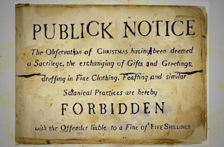 In 1744, this beautiful hymn was written in celebration of Christmas inviting all to joyfully come and witness, to behold the newborn Christ Jesus. Almost 100 years earlier, in the 17th century in 1659, Puritans who had just come over from England to Massachusetts declared a ban on Christmas. Christmas for them was too ritualistic and closely tied to Catholicism. They blamed people who celebrated Christmas to be pagans – putting up Christmas trees, manager scenes, carols, etc. Additionally, the date of Christmas for the Puritans was problematic because it was tied to the Winter Solstice and the Saturnalia, a pagan holiday before Constantine. And so in an effort to bring Christ back into the true celebration of the Nativity all public celebrations of December 25 as Christmas was banned. “Men dishonor Christ more in the 12 days of Christmas than in all the 12 months besides,” wrote 16th-century clergyman Hugh Latimer as Christmas partygoers used the holiday as an excuse to feast, drink, gamble and engage in immoral behavior. What’s more, scripture doesn’t give a date, time or season of when Jesus was born and so therefore, in the 17th century the Puritans led by Oliver Cromwell banned Christmas in Massachusetts.