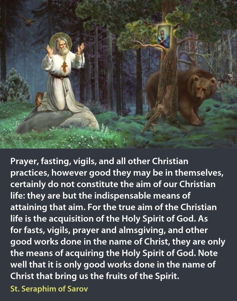 And finally, another revelation is that God transforms us. When Christ did this miracle of water into wine, He reveals to us that the things of the past, our brokenness, our emptiness, our hurt, our sins, when we give into God’s hands, they will be transformed, we will be transformed, into something greater. St. Seraphim of Sarov says, “prayer, fasting, vigils and all other Christian practices, however good they may be in themselves, certainly do not constitute the aim of our Christian life: they are but the indispensable means of attaining that aim. For the true aim of the Christian life is the acquisition (receiving) of the Holy Spirit of God.” In other words, my dear brothers and sisters, coming to Church, praying, reading the Scriptures and saying we are a Christian means very little if we think that “doing” is what God wants from us. These things are what help us mature to understand the clues in our life but which ultimately must lead to us being in Communion with God. Being a Christian, understanding those clue requires to be guided to God not just philosophically but practically, in our life daily; to walk with God in our actions, our thoughts, our hopes and behavior. In the way we treat others, and ourselves. We do these not because we do them for God but because they reveal how God work through us when we have been transformed, reborn not just of water but of spirit.