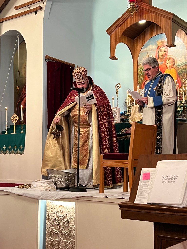 On Thursday, faithful gathered in the morning for Badarak. Again in the evening faithful gathered for the washing of the feet service, where we understand that Christ, who is King of Kings, who is God, humbled himself and washed the feet of his beloved disciples, calling us to do likewise.