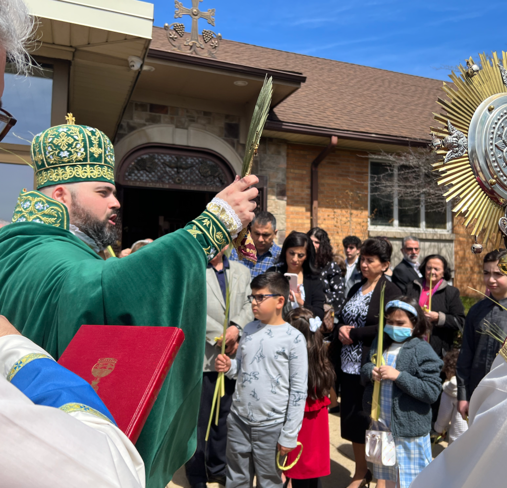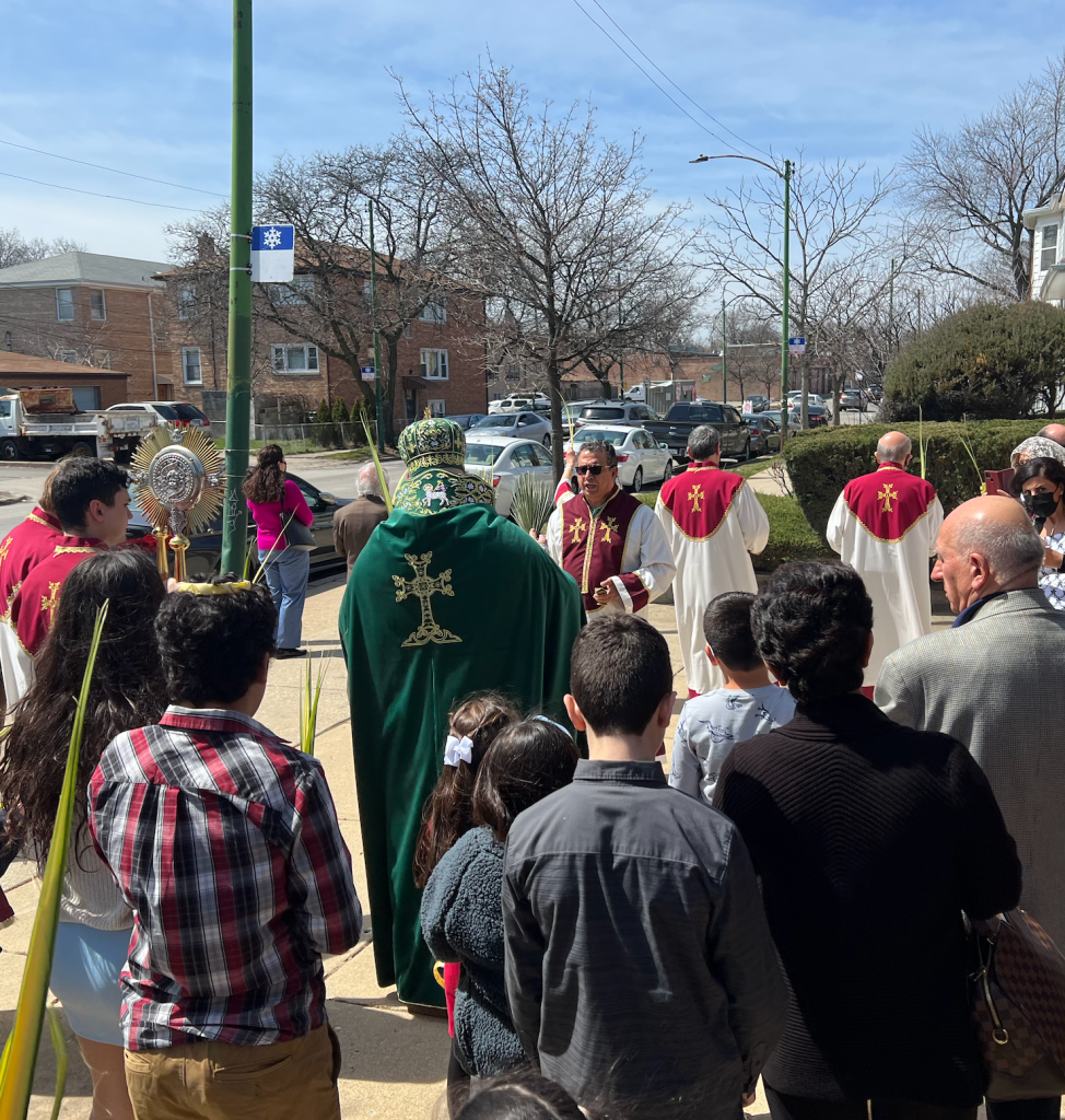 Following Badarak, Fr. Andreas blessed the Palms, Palms Crosses, and children, as everyone together processed outside for a blessing of the 4 corners of the world, Antasdan, as is the tradition of the Church.